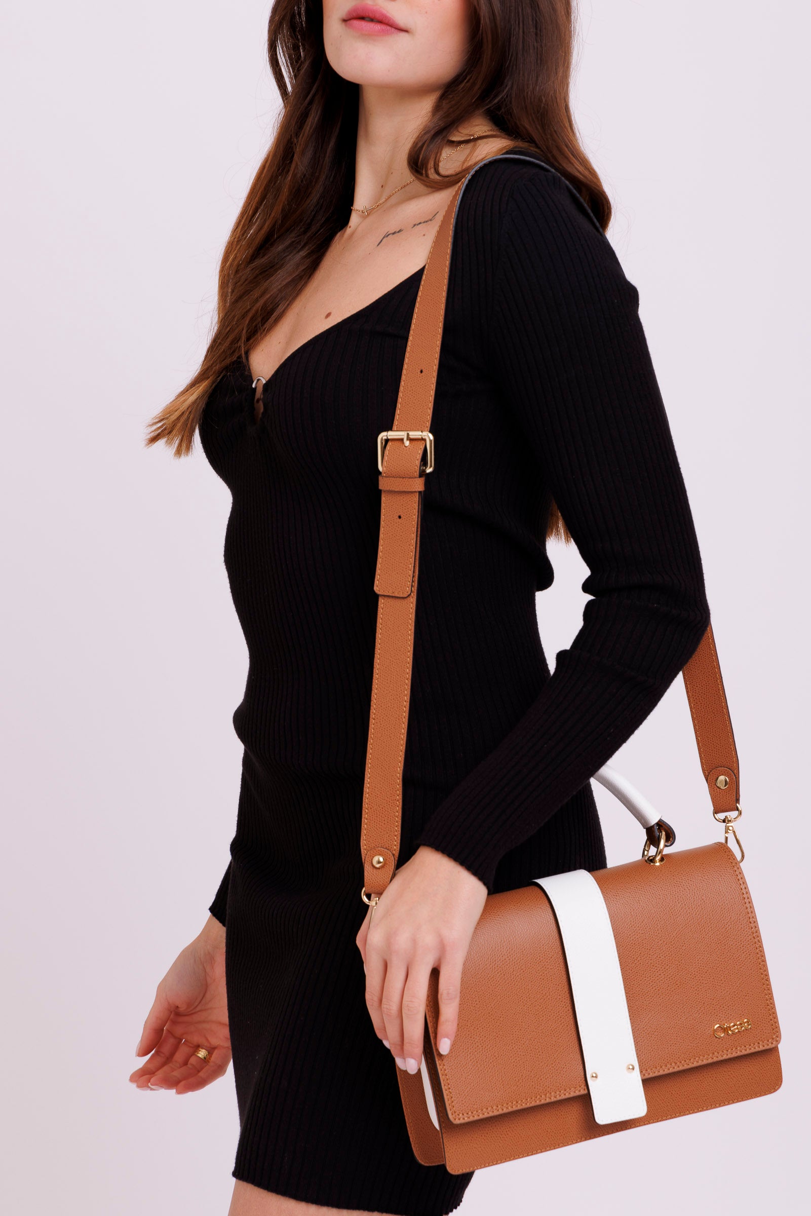 Bolso Bandolera Oriente Silla Cocodrilo Camel Blanco