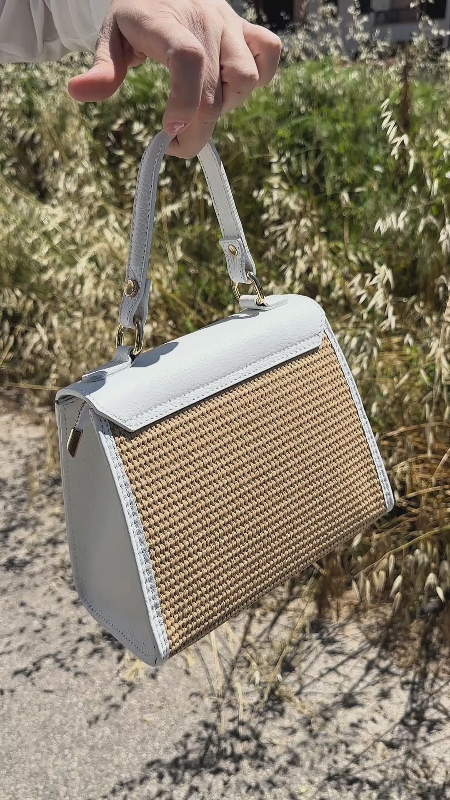 La Bolsa Gaia Blanca Vimini es la elección ideal para tus salidas de verano. Esta bolsa pequeña y compacta es perfecta para llevar contigo solo lo esencial, mientras que los colores fuertes y los acabados en camel la hacen elegante y moderna. Podrás llevarla cómodamente a mano o en bandolera.
